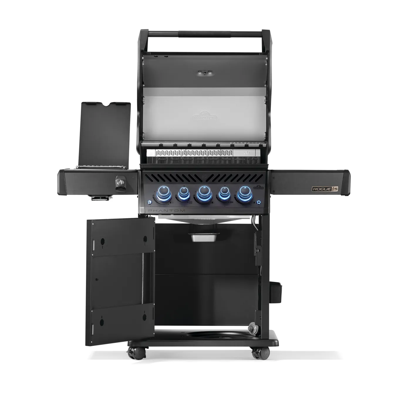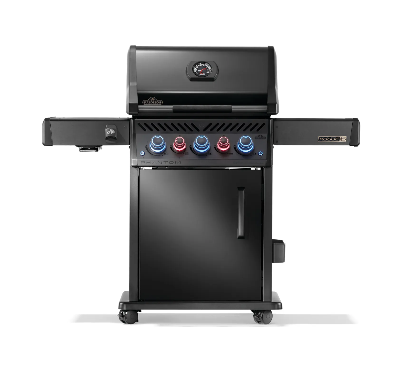 Газовый гриль NAPOLEON® ROGUE PRO-S 425 Phantom серьёзно вооружён! У него 3 основные горелки, боковая керамическая инфракрасная горелка увеличенного размера и задняя горелка для вертела. Суммарная мощность гриля составляет 23,75 кВт.
