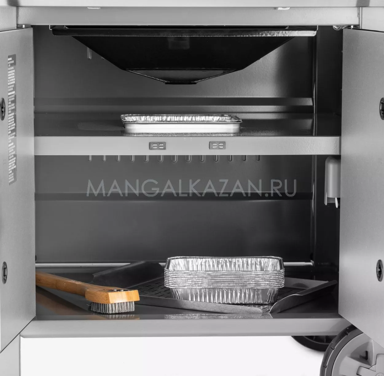 Место для газового баллона вынесено наружу под правый боковой столик и скрыто от глаз заслонкой. Таким образом баллон не мешает грилю выглядеть восхитительно, и освобождает место внутри для хранения аксессуаров.