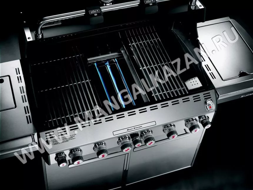 Модель оснащена шестью основными и одной инфракрасной горелкой, направленной на вертел. Компания также установила еще одну дополнительную горелку с системой Sear Station, которая создает поджаренную корочку на продукте.