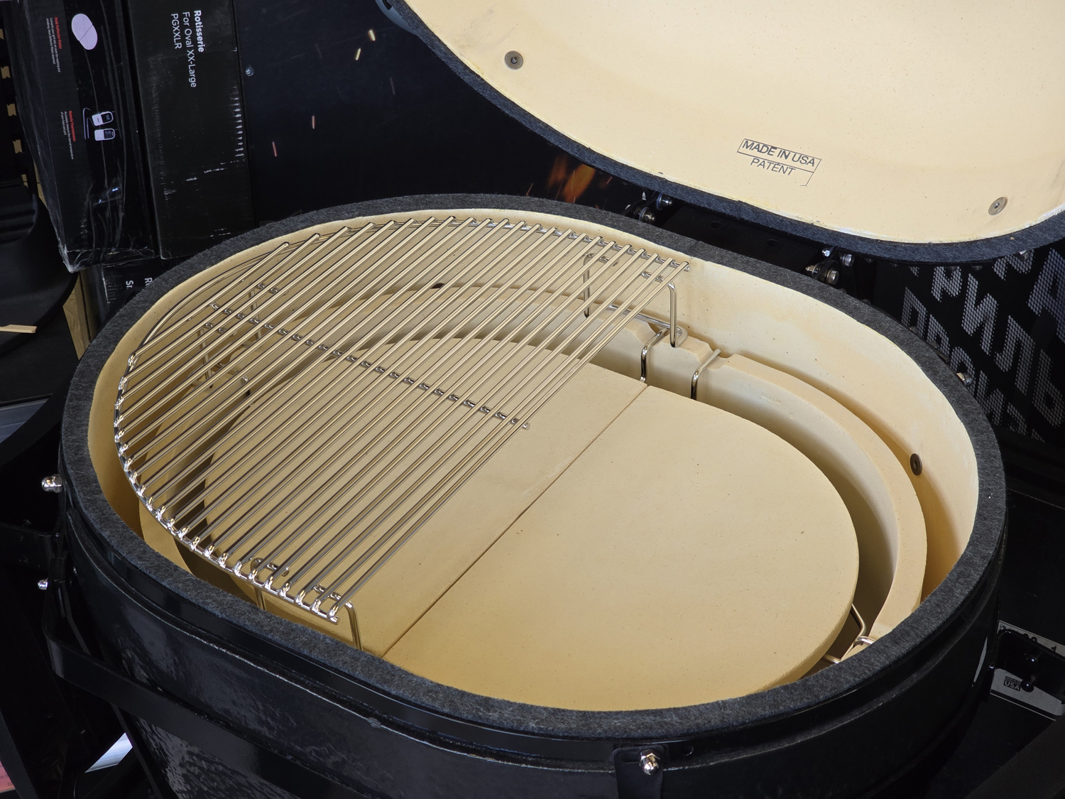 Керамические грили традиционно делают круглыми, но эта форма не является оптимальной. Вам будет неудобно дотягиваться до дальнего края и часть пространства всегда будет простаивать, потому что туда ничего не поместится – эти проблемы решены в Primo с помощью запатентованной овальной формы.
