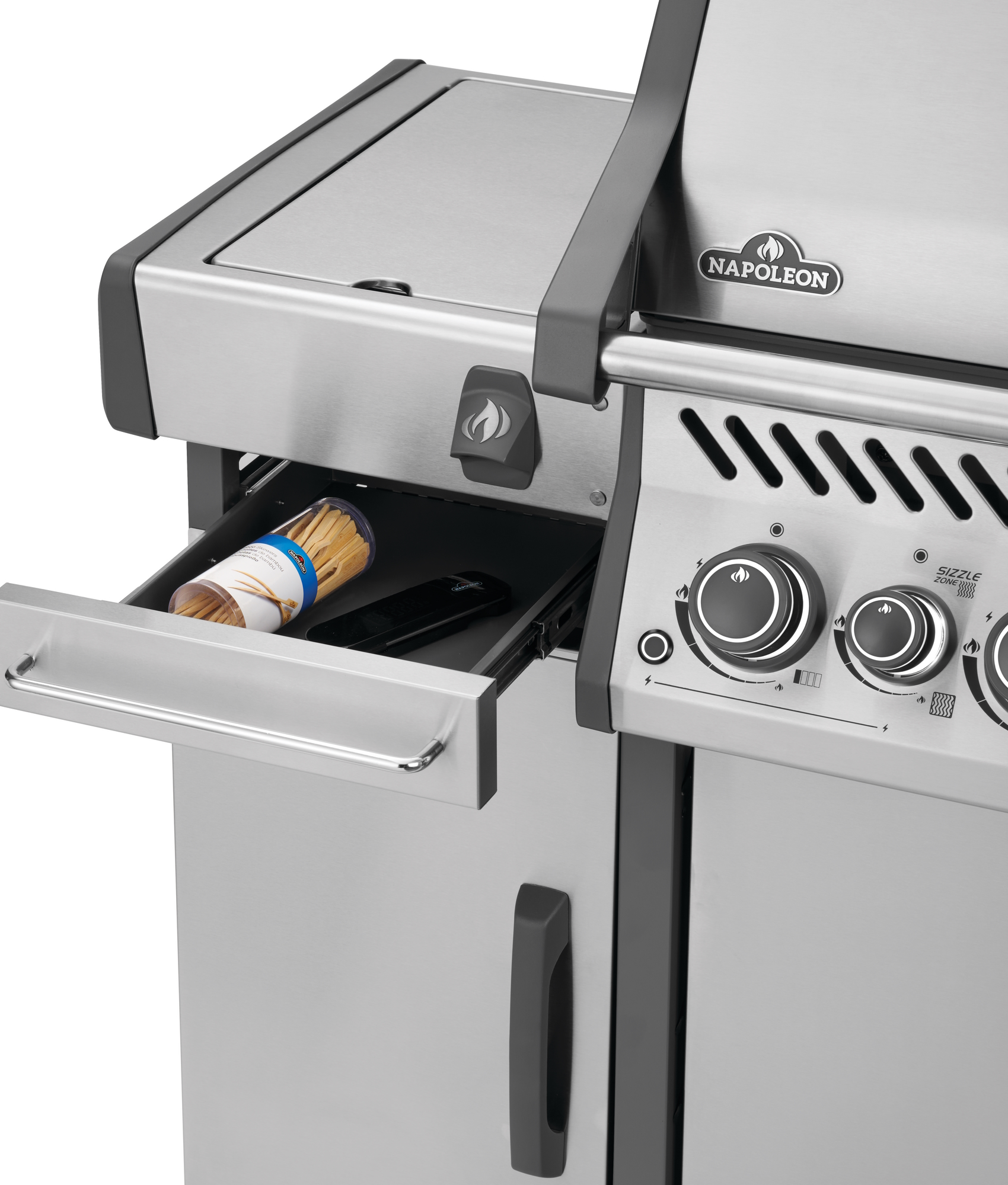 Тумба для хранения аксессуаров подходит ко всем газовым грилям Napoleon серии Rogue, сделанным из нержавеющей стали. Она может быть установлена как справа, так и слева от гриля. Либо возьмите две тумбы и используйте их одновременно.