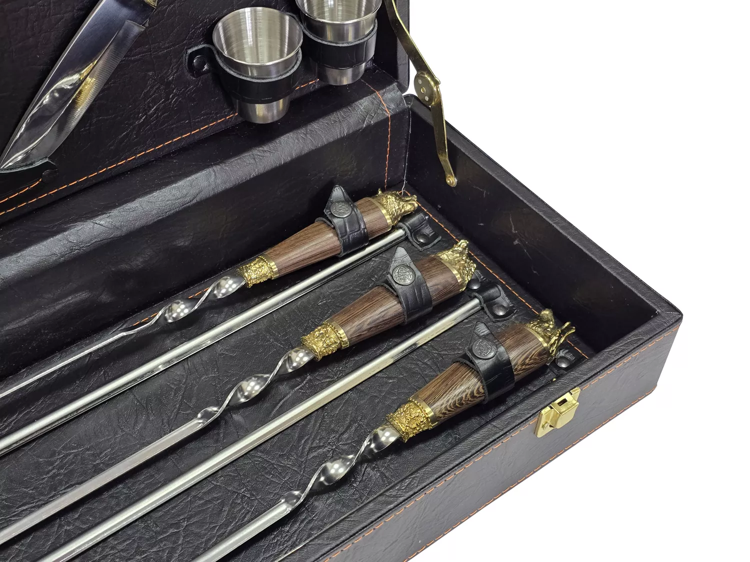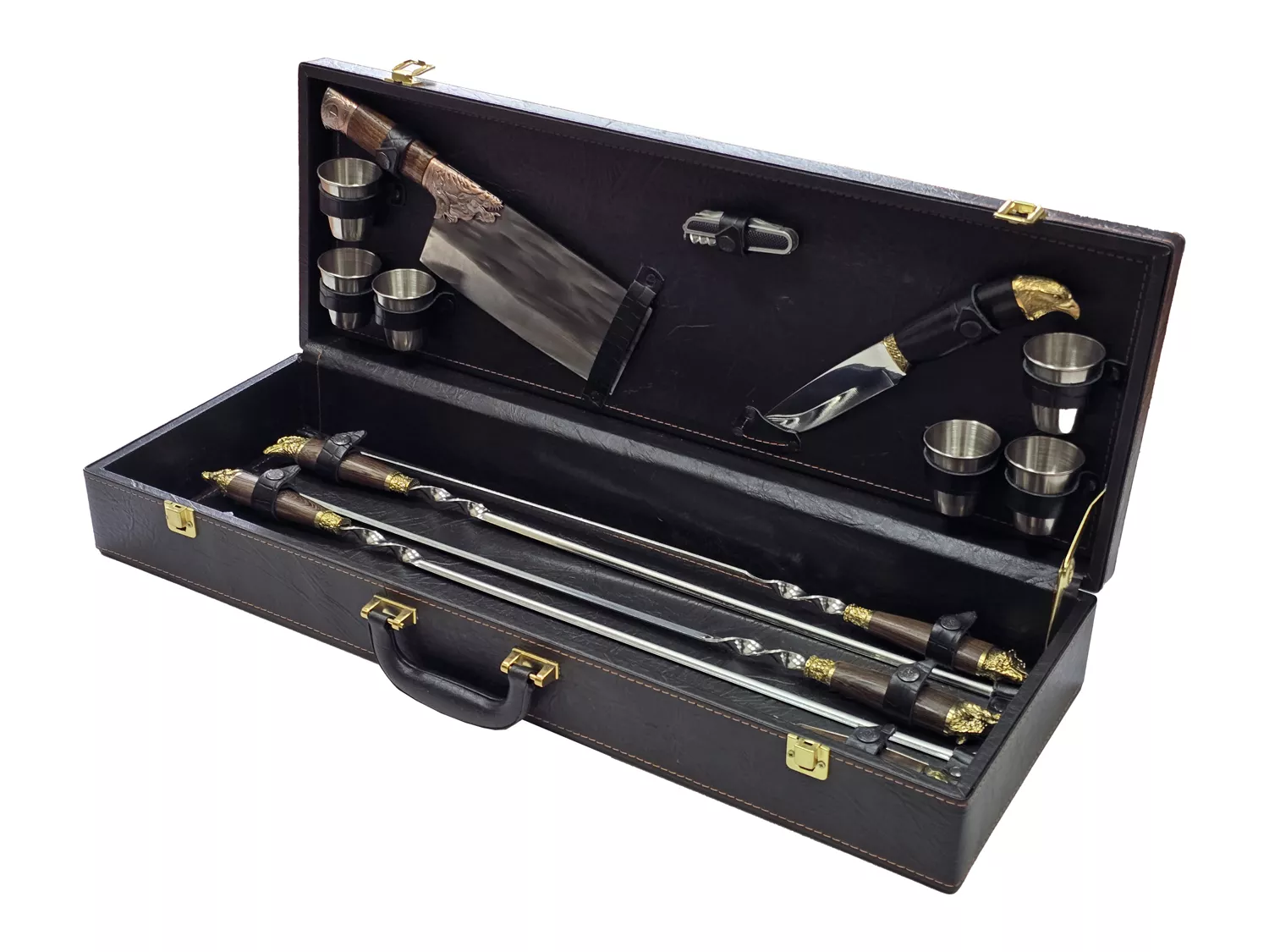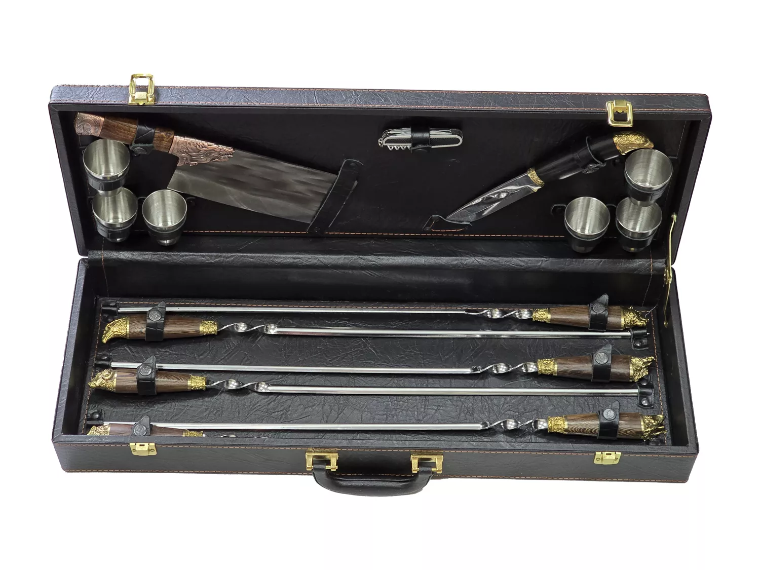 Набор для шашлыка ручной работы. Отличный подарок себе, коллеге, другу и родственнику. С кейсом удобно отправляться на пикники или просто держать необходимые инструменты в порядке.