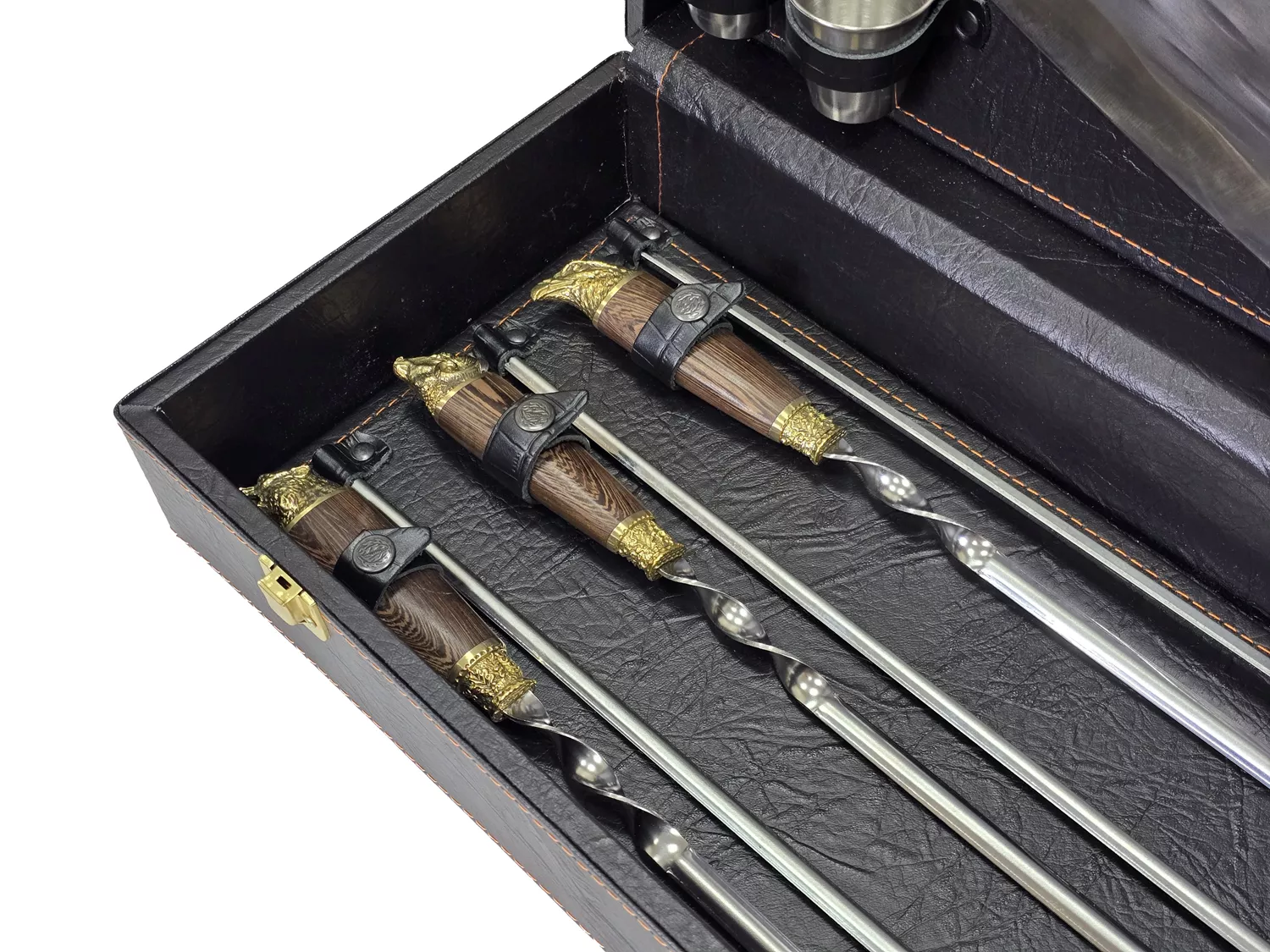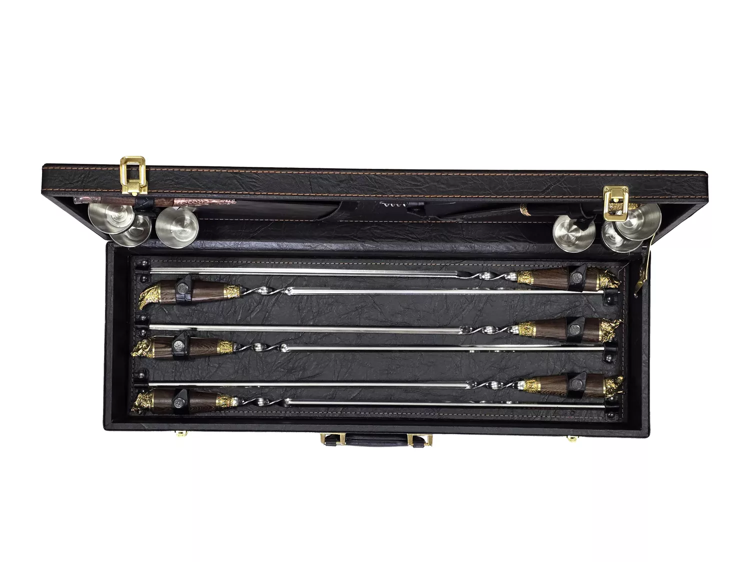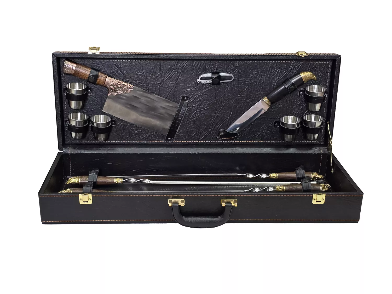 Набор для шашлыка ручной работы. Отличный подарок себе, коллеге, другу и родственнику. С кейсом удобно отправляться на пикники или просто держать необходимые инструменты в порядке.