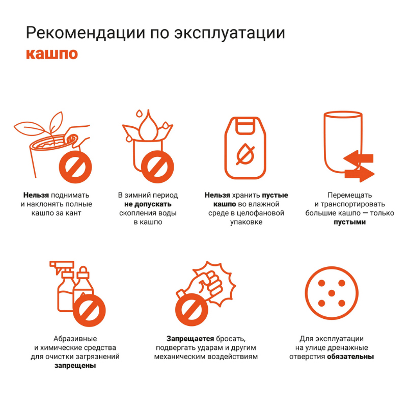 Для кашпо коллекций, рассчитанных на размещение на улице, дренажные отверстия обязательны. Предупредите нас, и мы сделаем их при производстве кашпо. Дренажные отверстия Вы можете сделать и самостоятельно – при помощи дрели.