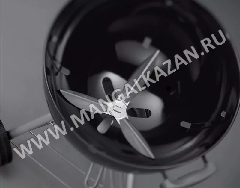 Гриль оборудован системой One-Touch для комфортной очистки дна чаши гриля от золы. Также она служит для регулирования поступления воздуха в крышке, позволяя получить наиболее подходящее распределение температуры и потоков воздуха в котле.