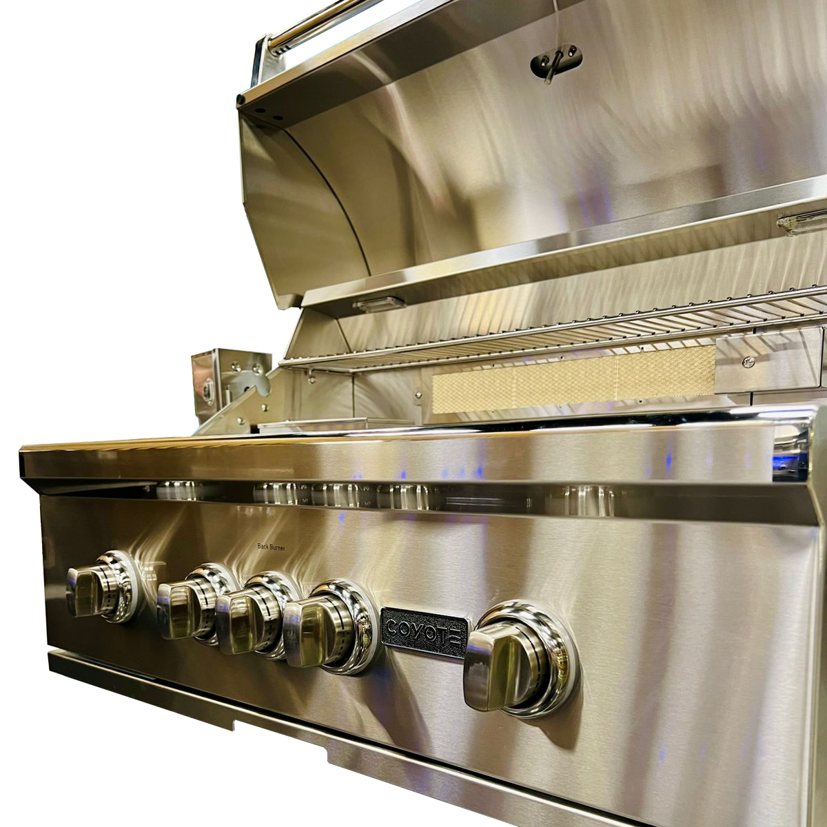 Вспышки пламени возникают, когда жир и мясные соки попадают на пламя газовой горелки. Чтобы этого избежать, в гриле Coyote SL 36 используется многоступенчатая система защиты: