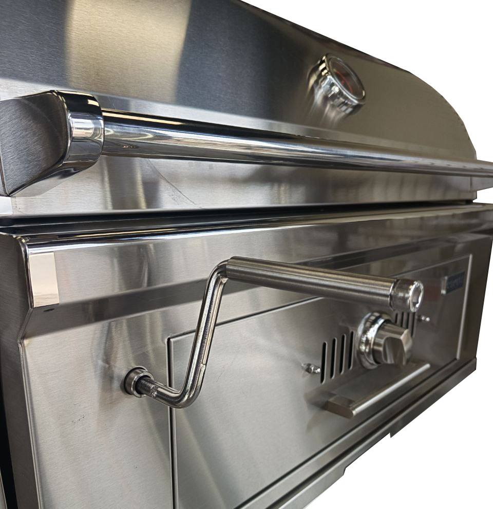 Очаг, крышка, барбекю-решетки, поддон для угля, горелки - всё выполнено из нержавеющей стали высшей пробы. Гриль прослужит десятилетия благодаря качественным материалам.