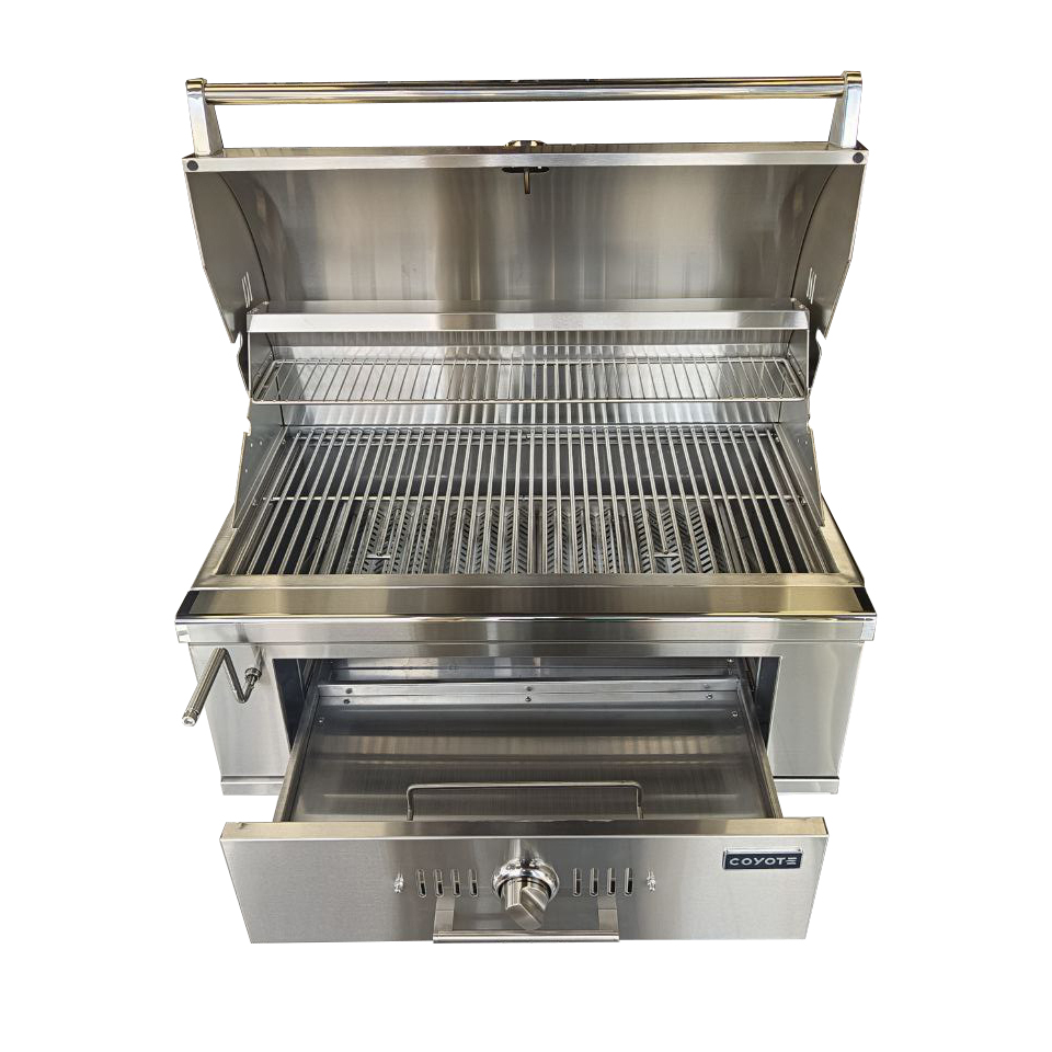 Встраиваемый угольный гриль Coyote 36 – это премиальный угольный гриль с большой площадью барбекю-решетки, точным контролем температуры и регулируемым по высоте поддоном для угля. Гриль полностью сделан из 304-й нержавеющей стали и имеет ограниченно пожизненную гарантию.